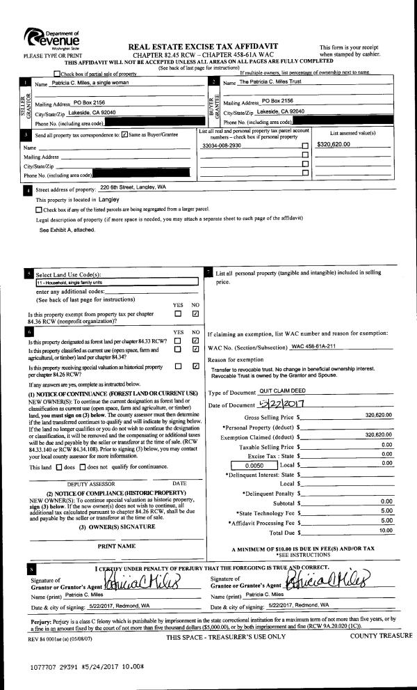 | 6 | 07/29/2005 | WD | Warranty Deed | ANDERSON, LINDA | SOUTH WHIDBEY AIRPARK LLC, | | | $375,000.00 | 53701 | 4142681 |