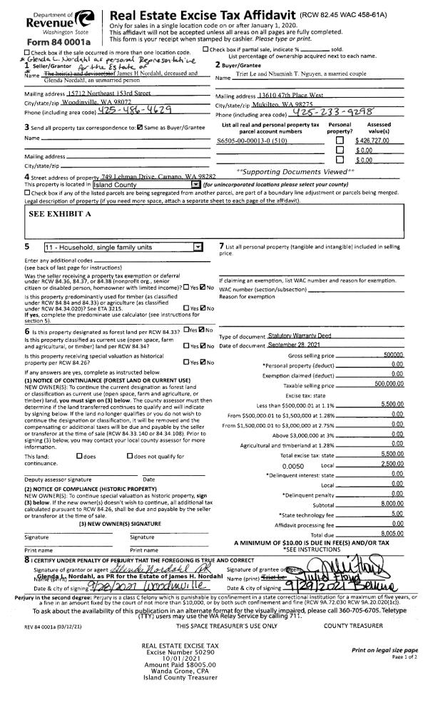 | 7 | 07/29/2005 | WD | Warranty Deed | ANDERSON, LINDA | SOUTH WHIDBEY AIRPARK LLC, | | | $375,000.00 | 53701 | 4142681 |