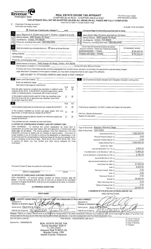 | Mailing Address: | PATRICK C MCDANEL 760 QUARTER MOON TERRACE CAMANO ISLAND, WA 98282 | % Ownership: | 100.0000000000% |
