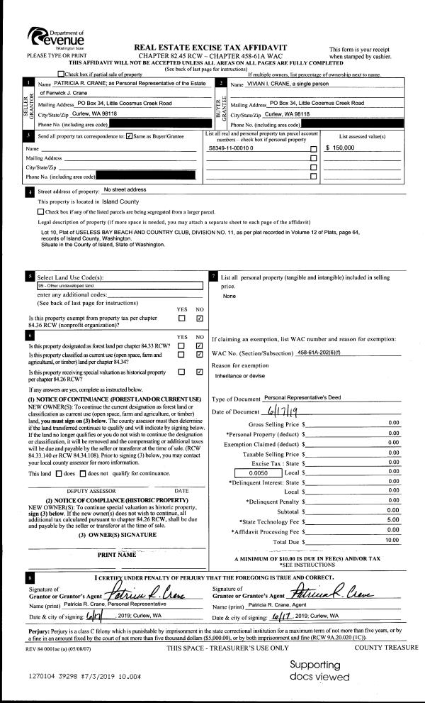 | 7 | 05/13/2005 | WD | Warranty Deed | EVERGREEN STATE TREE FARM , IN | FRIESEN JR, HARVEY K | | | $129,500.00 | 52194 | 4134569 |