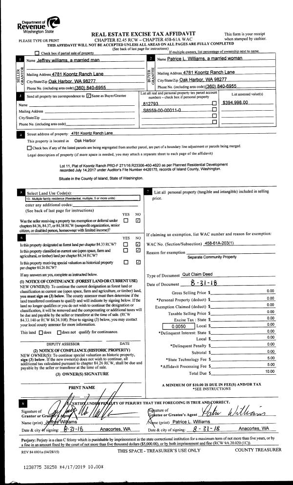 | Mailing Address: | JILL COLLEEN EDWARDS 4260 WIKINSON FARM LN LANGLEY, WA 98260 | % Ownership: | 100.0000000000% |