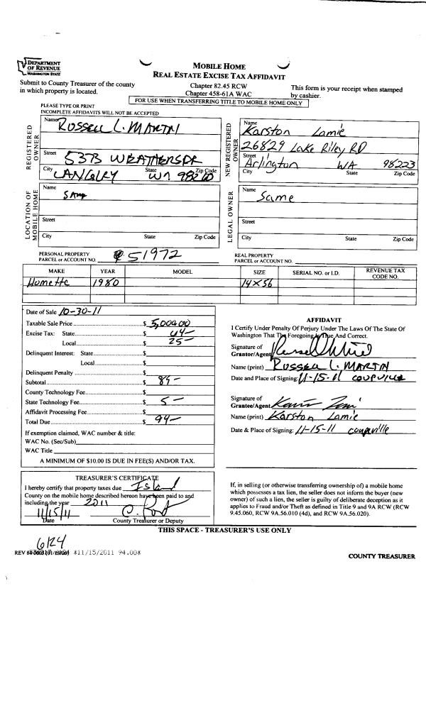 | 1 | 06/18/2021 | MANHOME | Manufactured Home | DAVIS TRUSTEE, RENA M | DARR, MARIAN K | | | $105,000.00 | 48816 | |