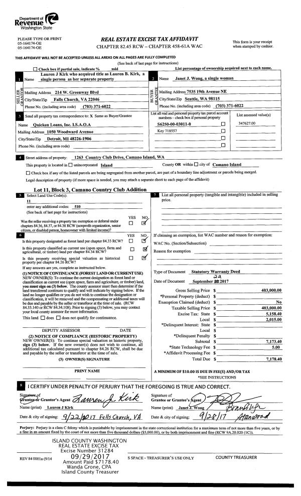 | 1 | 02/17/2015 | WD | Warranty Deed | SEATTLE PACIFIC HOMES INC | MCRACKEN II, WILLIAM E | | | $329,950.00 | 18537 | 4373569 |