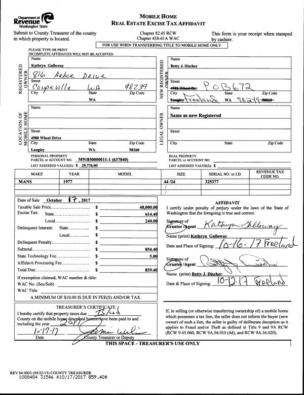 | Mailing Address: | 997 NW LONGVIEW DR OAK HARBOR, WA 98277 | % Ownership: | 100.0000000000% |