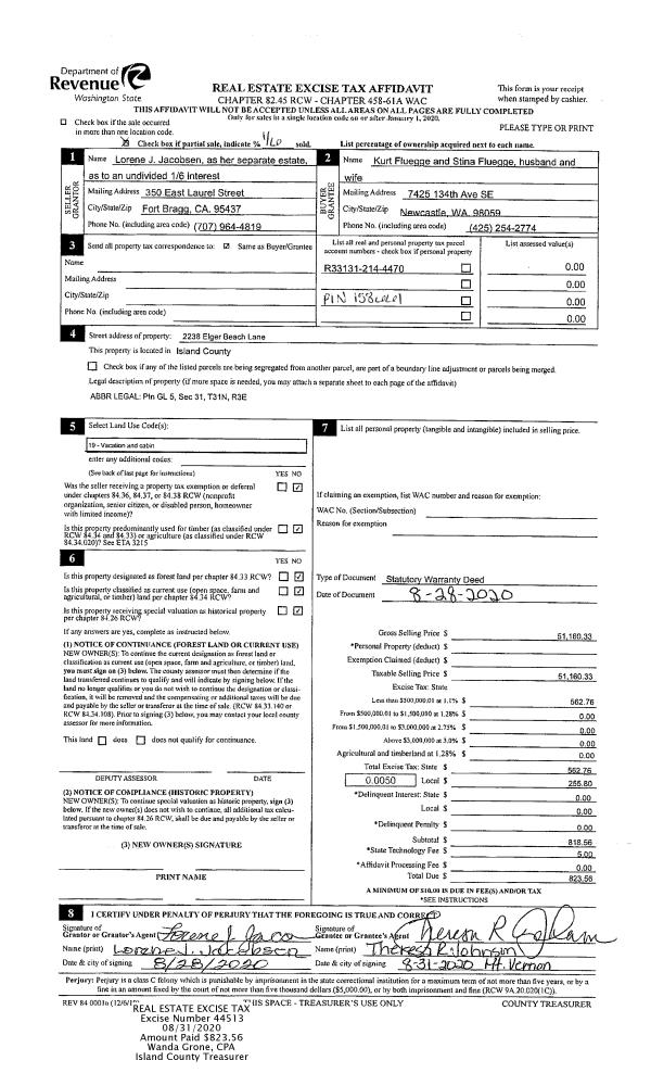 | 4 | 11/10/2006 | WD | Warranty Deed | MUELLER, RAYMOND D | MARTHA LAKE BUILDERS LLC, | | | $117,647.00 | 64892 | 4187090 |