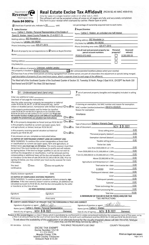 | 5 | 11/10/2006 | WD | Warranty Deed | MUELLER, RAYMOND D | MARTHA LAKE BUILDERS LLC, | | | $117,647.00 | 64892 | 4187090 |