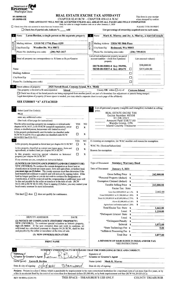 | Mailing Address: | AMY WALKER 1498 NW 5TH AVE OAK HARBOR, WA 98277 | % Ownership: | 100.0000000000% |