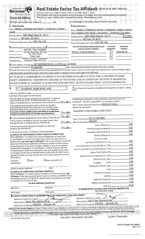 | Mailing Address: | VERNITA F GREGERSON 1075 SW ERIE ST OAK HARBOR, WA 98277 | % Ownership: | 100.0000000000% |
