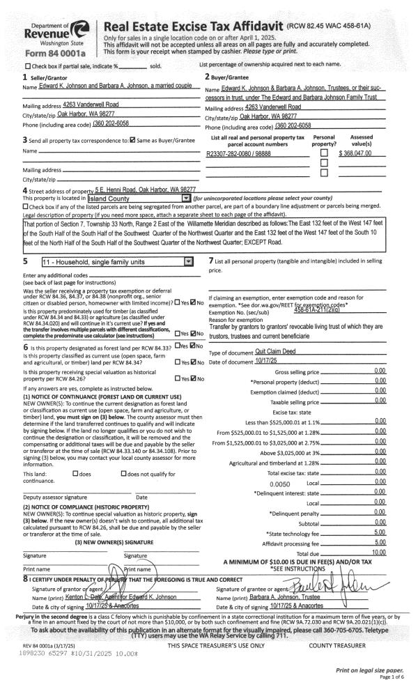 | Mailing Address: | 325 NE KETTLE ST APT 102 OAK HARBOR, WA 98277 | % Ownership: | 100.0000000000% |