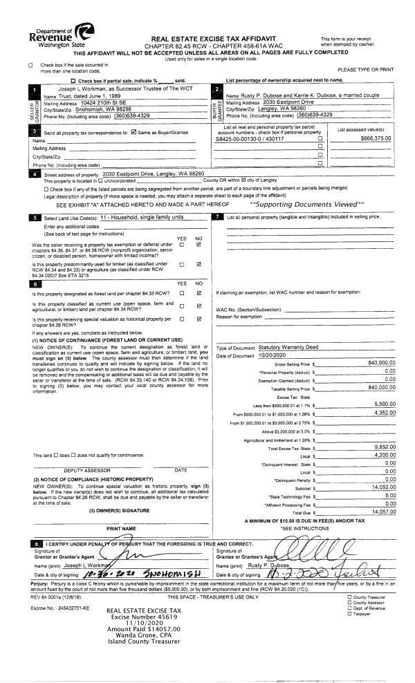 | SWHIDPRMT | P & R S Whidbey GEN | 0.2053334452 | $330,000 | $330,000 | $67.76 | | |