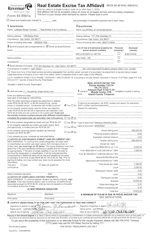 | 1 | 07/14/2008 | DECREE | Divorce Decree/Legal Separation | EAST CAMANO TRUST, | SAMPLES, BARBARA L | | | $0.00 | 82239 | 4235693 |