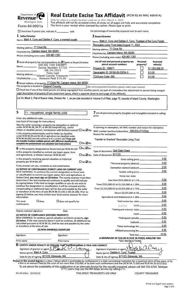 | Mailing Address: | GELINE P CARDWELL 299 NW 7TH CT OAK HARBOR, WA 98277-4459 | % Ownership: | 100.0000000000% |