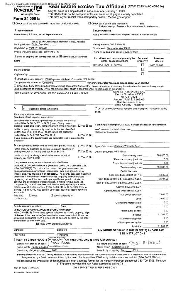 | Mailing Address: | 7886 BLAKELY AVE CLINTON, WA 98236 | % Ownership: | 100.0000000000% |