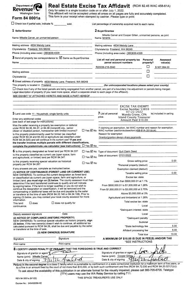 | Mailing Address: | HAZEL M WELLS, TTEE 175 TRIANGLE COVE LN CAMANO ISLAND, WA 98282 | % Ownership: | 100.0000000000% |