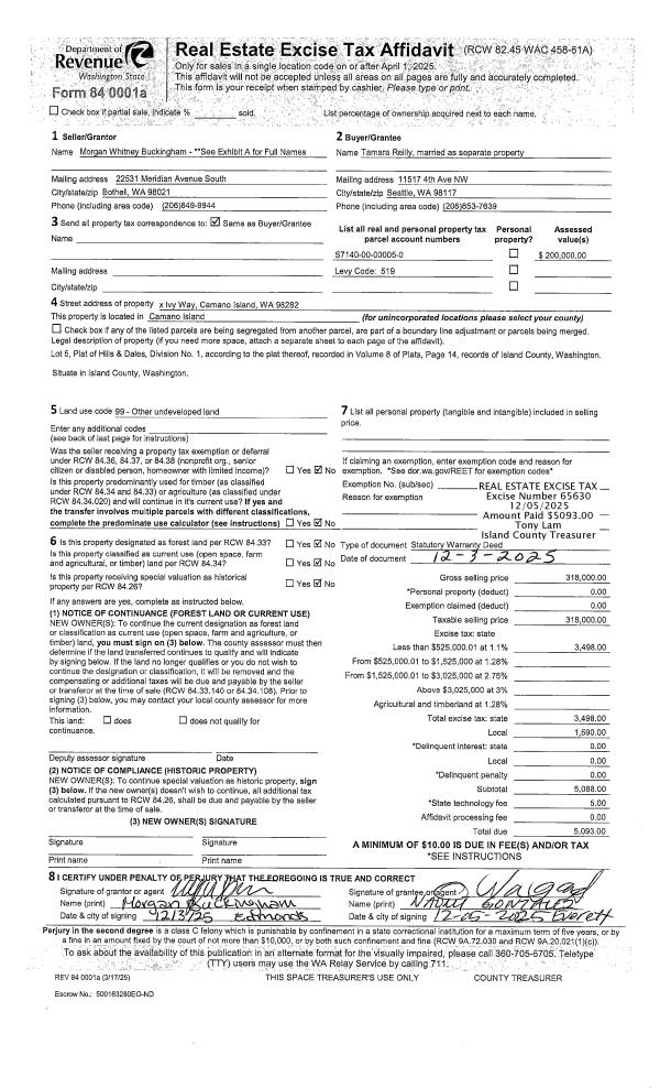 | 1 | 08/14/2025 | WD | Warranty Deed | ISAACSON, PAUL E | WHIDBEY CAMANO LAND TRUST | | | $1,755,000.00 | 64522 | 4589755 |
