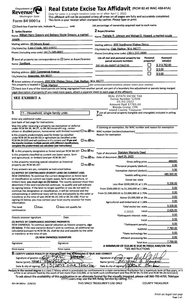 | Mailing Address: | 122 N EAST CAMANO DR CAMANO ISLAND, WA 98282-5516 | % Ownership: | 100.0000000000% |
