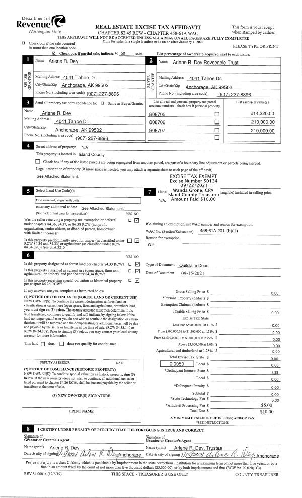 | Mailing Address: | 878 GRACE LN LANGLEY, WA 98260 | % Ownership: | 100.0000000000% |