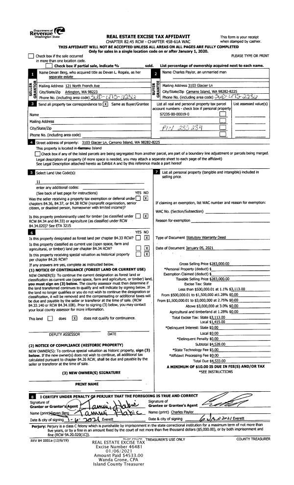 | Mailing Address: | 1125 SHERWOOD LN GREENBANK, WA 98253 | % Ownership: | 100.0000000000% |