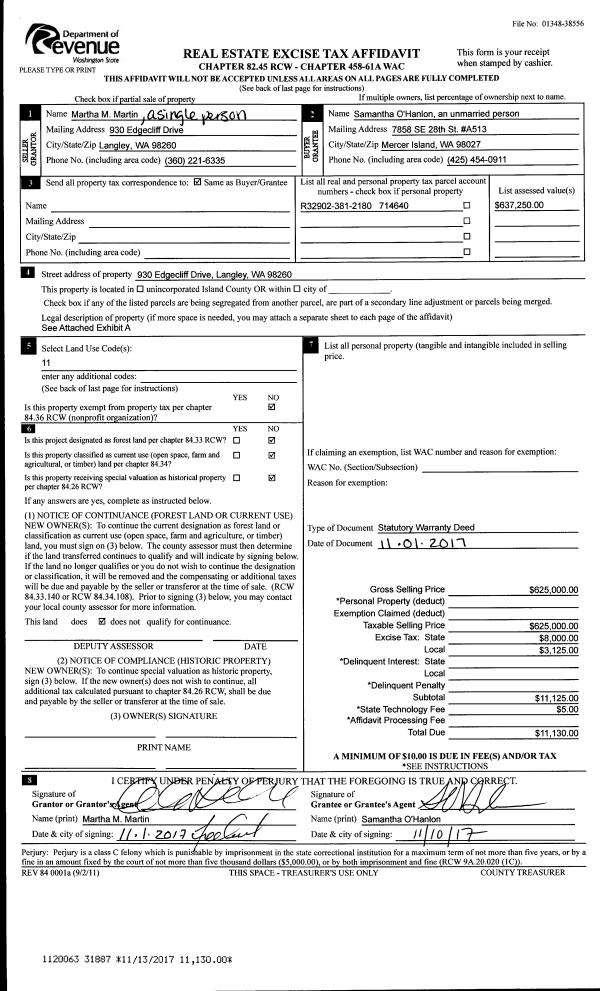 | Mailing Address: | ELIZABETH UHRICH 310 TERESA ST CAMANO ISLAND, WA 98282 | % Ownership: | 100.0000000000% |