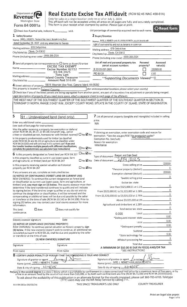 | 1 | 02/18/2025 | WD | Warranty Deed | LINDER JR, MICHAEL | BRIDGES, TERRY LEE | | | $137,000.00 | 62611 | 4582434 |