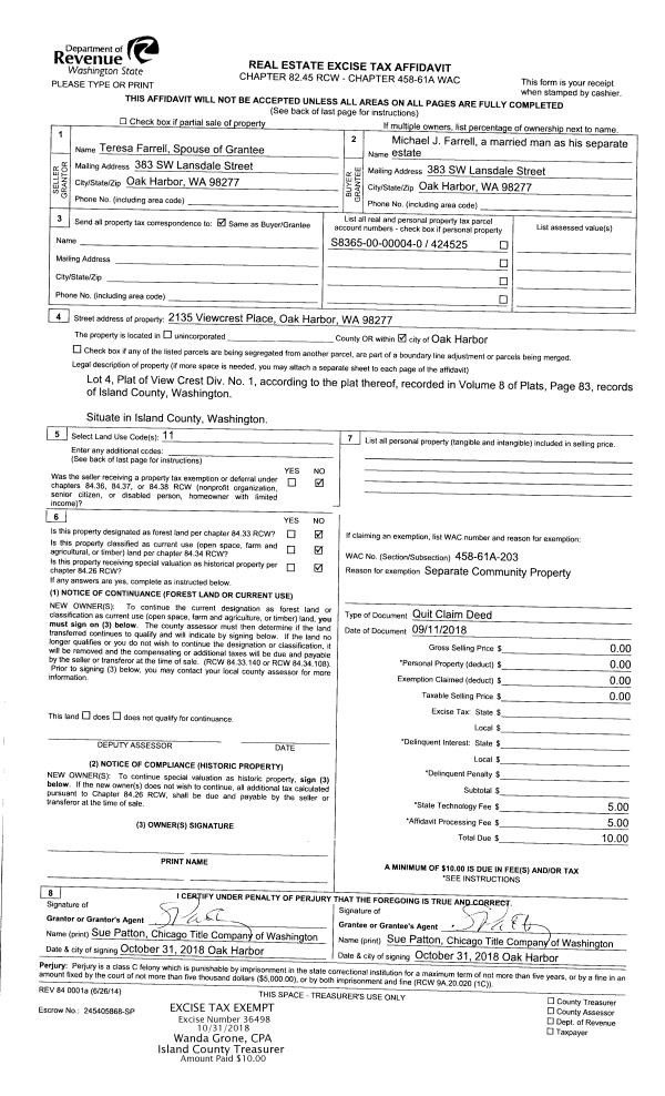 | 3 | 09/20/2018 | WD | Warranty Deed | MCMASTER, LARRY | KOENIG, KAREN A | | | $120,000.00 | 35986 | 4452084 |