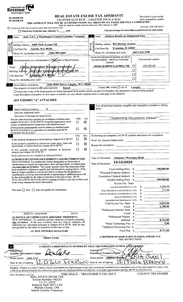 | Mailing Address: | 704 N MAIN ST COUPEVILLE, WA 98239 | % Ownership: | 100.0000000000% |