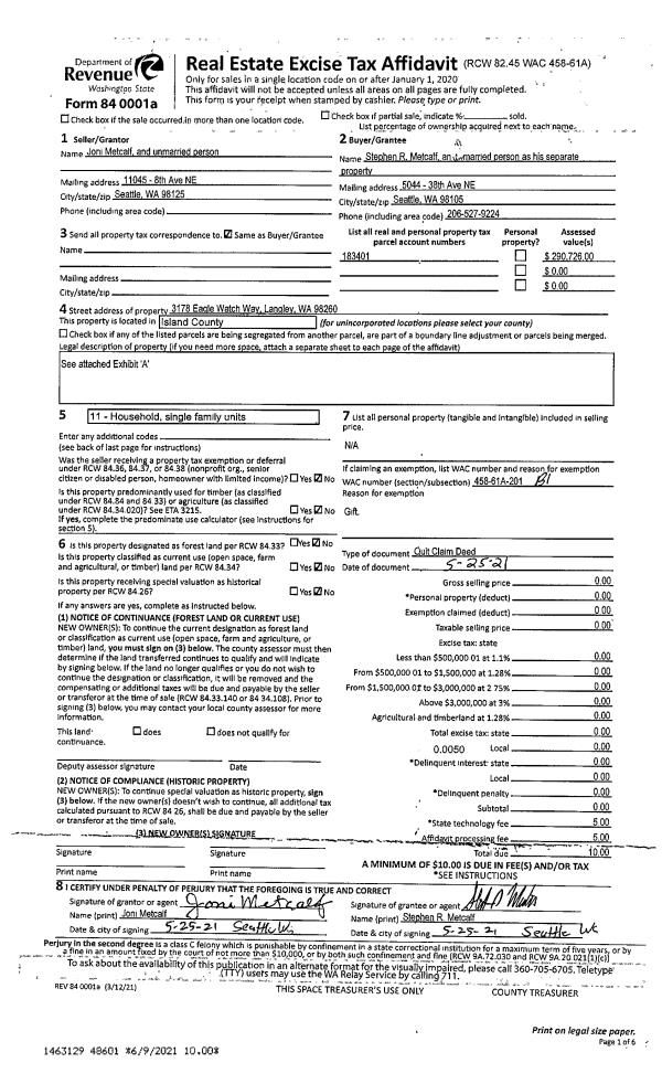 | Tax Area: | 719 - APPRAISER-S Whid Schl Dist, outside Langley, vacant & 50 acres or less | Land Use Code | 91 |