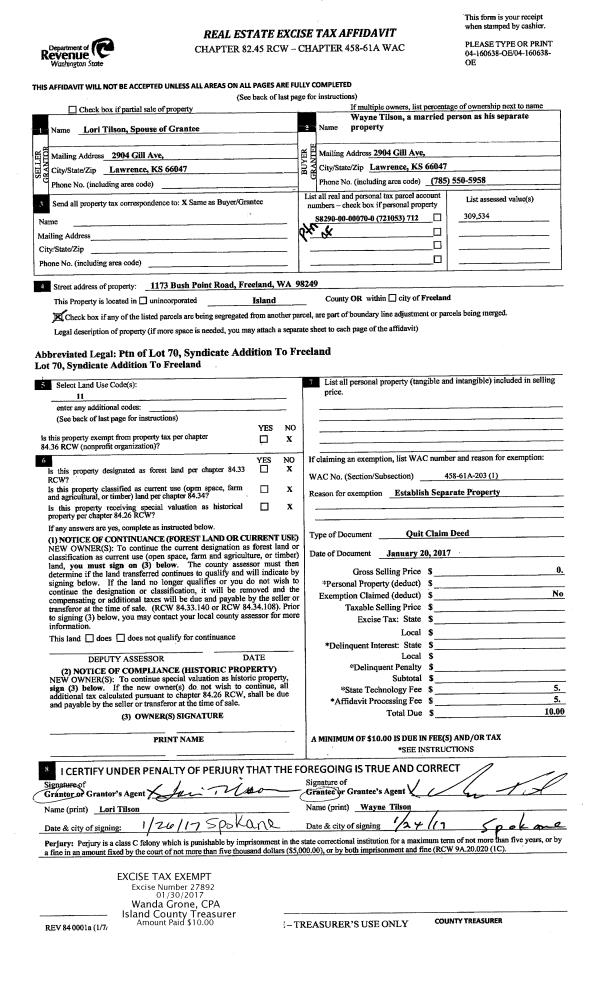 | Mailing Address: | MONICA B MCCANN 647 WIBORG PL NE CAMANO ISLAND, WA 98282-6607 | % Ownership: | 100.0000000000% |