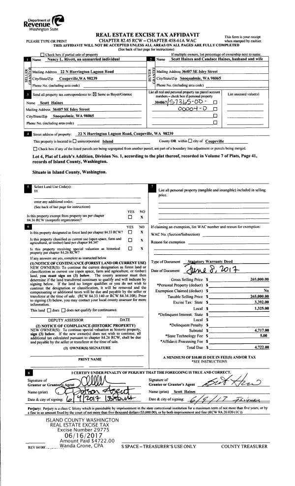 | Mailing Address: | JANET L RAYMER 455 RUSSELL RD CAMANO ISLAND, WA 98282 | % Ownership: | 100.0000000000% |