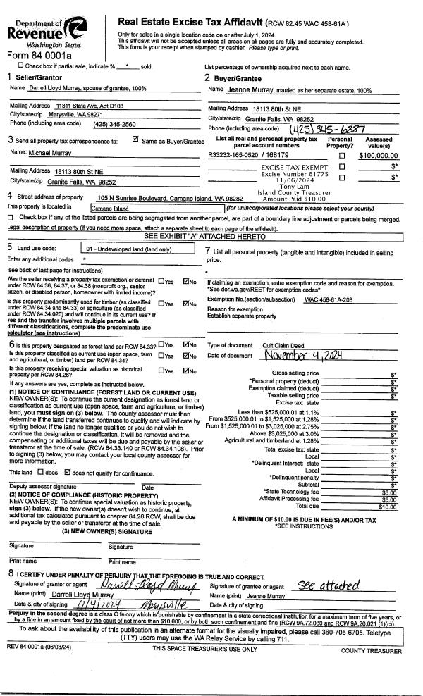 | Tax Area: | 719 - APPRAISER-S Whid Schl Dist, outside Langley, vacant & 50 acres or less | Land Use Code | 91 |