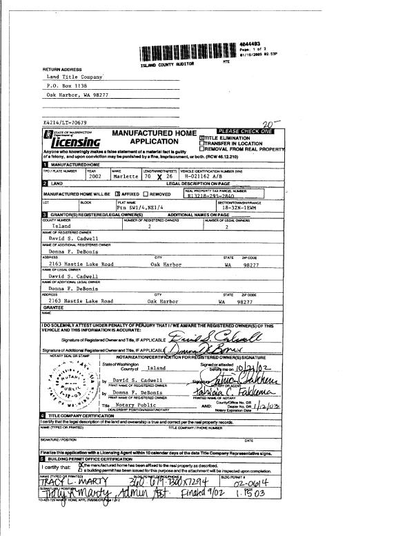 | Mailing Address: | 1193 DEWEY DR COUPEVILLE, WA 98239 | % Ownership: | 100.0000000000% |