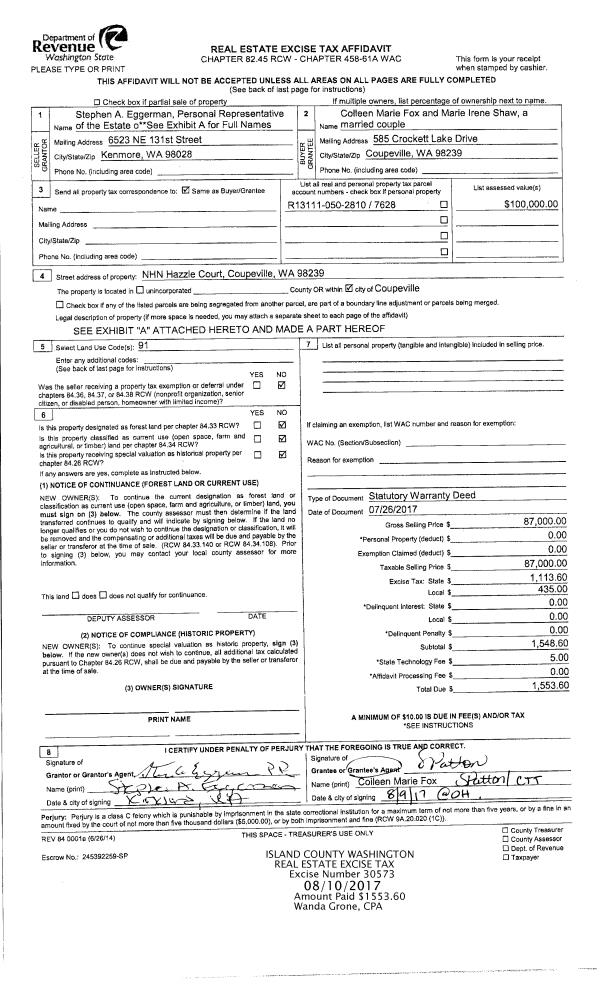 | Tax Area: | 719 - APPRAISER-S Whid Schl Dist, outside Langley, vacant & 50 acres or less | Land Use Code | 91 |