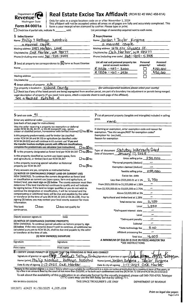 | Mailing Address: | PO BOX 1129 LANGLEY, WA 98260-1129 | % Ownership: | 100.0000000000% |