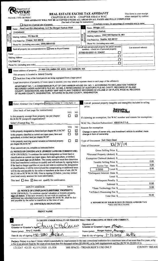 | Mailing Address: | PO BOX 222 FREELAND, WA 98249 | % Ownership: | 100.0000000000% |