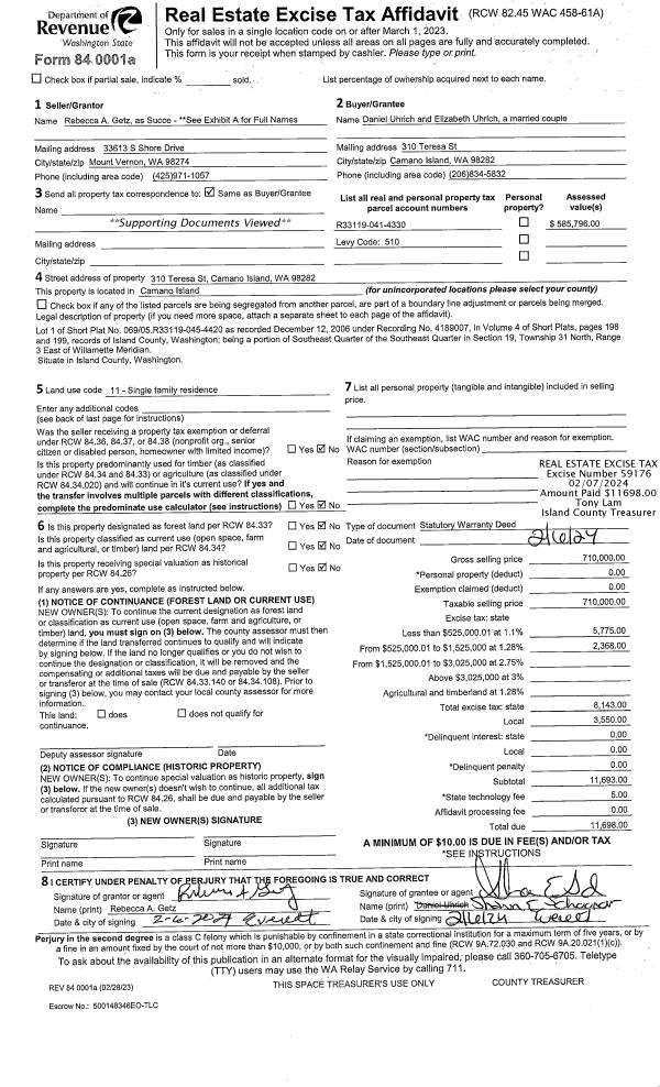 | Mailing Address: | 700 NW CROSBY AVE #103 OAK HARBOR, WA 98277 | % Ownership: | 100.0000000000% |