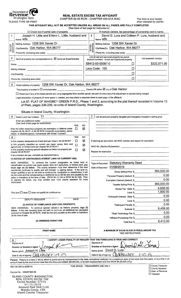 | Mailing Address: | TERESE M ROOT 902 NW SCENIC VISTA ST OAK HARBOR, WA 98277 | % Ownership: | 100.0000000000% |
