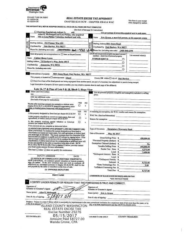 | Mailing Address: | 612 NE 4TH ST COUPEVILLE, WA 98239 | % Ownership: | 100.0000000000% |