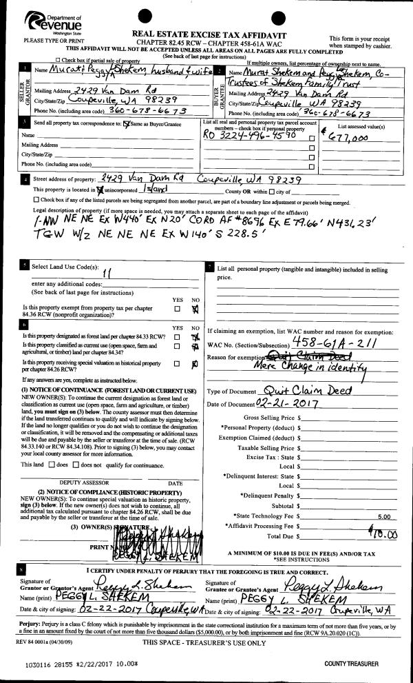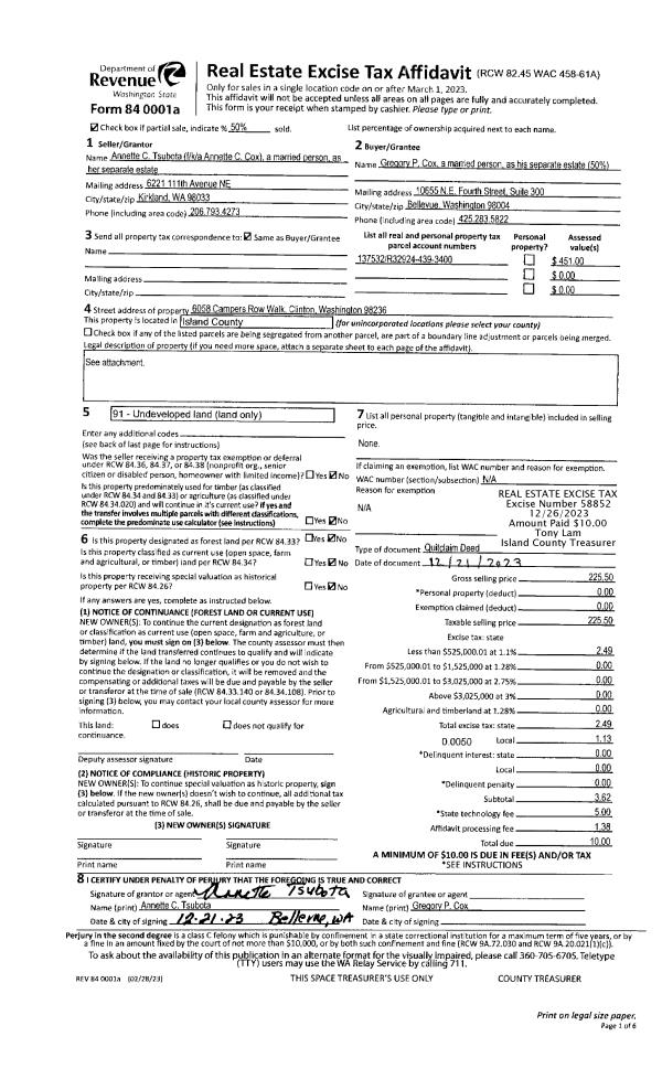 | Mailing Address: | 420 MILE HIGH DR CAMANO ISLAND, WA 98282 | % Ownership: | 100.0000000000% |