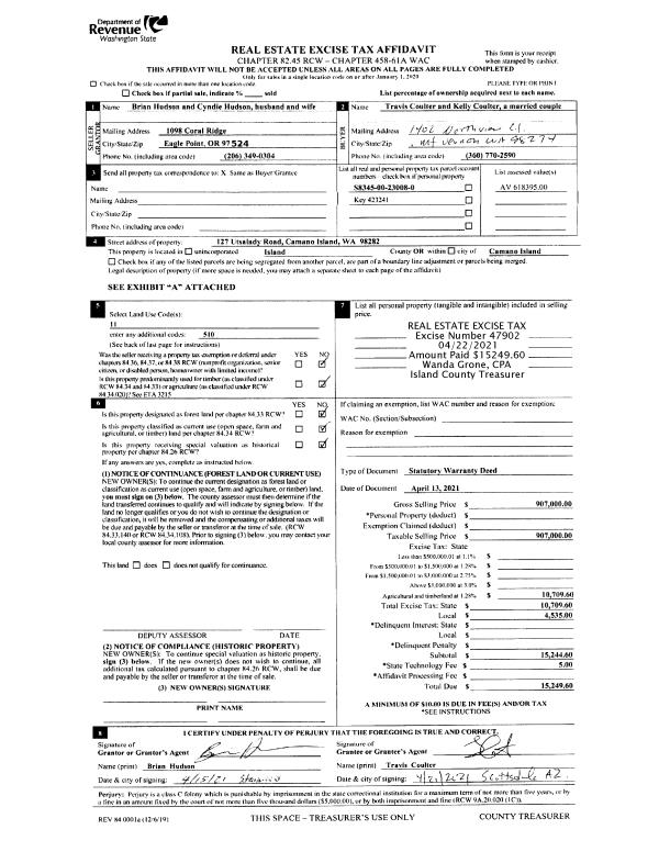 | Tax Area: | 719 - APPRAISER-S Whid Schl Dist, outside Langley, vacant & 50 acres or less | Land Use Code | 91 |