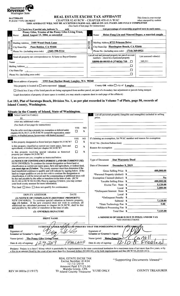 | 2019 | 50764 | FIRE5 - Fire & Rescue Dist #5 Central Whidbey | $260.68 | $260.67 | $0.00 | $0.00 | $521.35 | $0.00 |