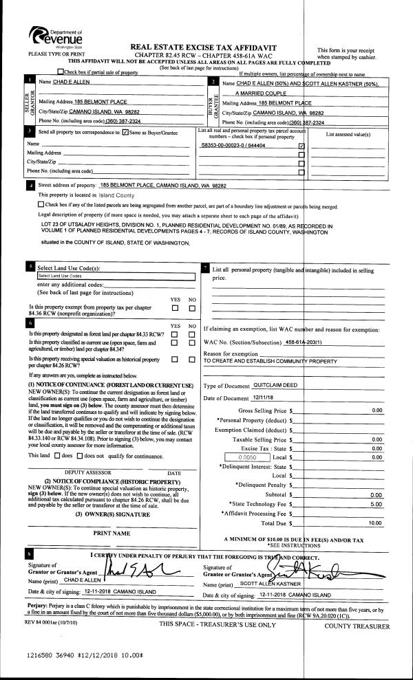 | 2 | 06/16/2016 | QCD | Quit Claim Deed | COUPEVILLE RESERVE LLC | CASCADE CUSTOM HOMES AND DESIGN, INC. | | | $0.00 | 24855 | 4401599 |
