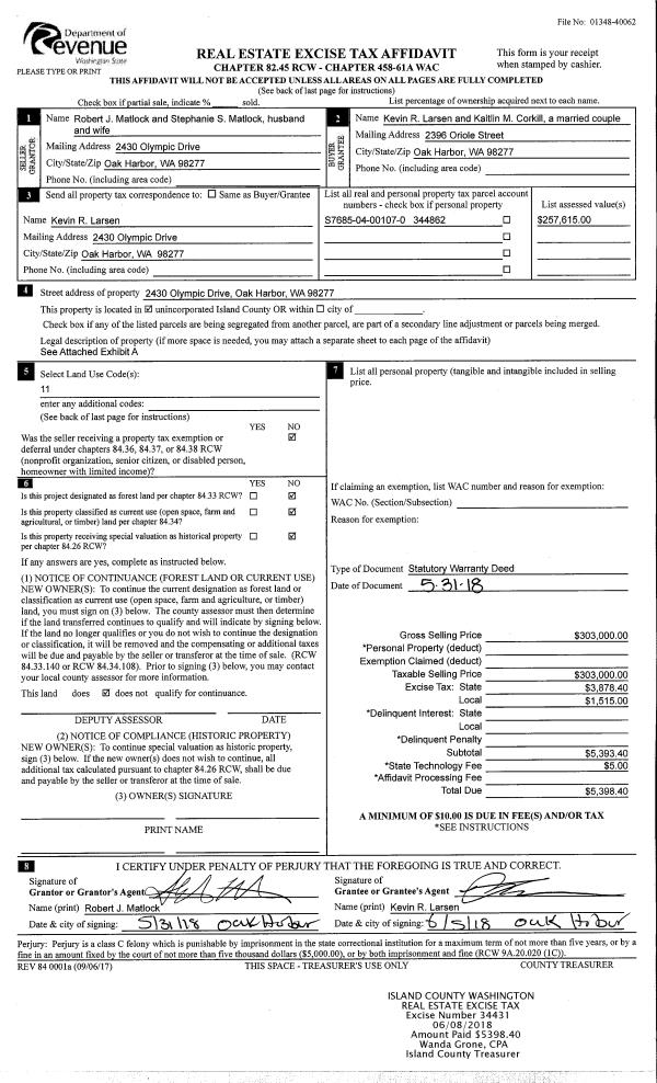 | 1 | 07/09/2018 | WD | Warranty Deed | TERAO TRUSTEE, DONALD | LAMMERS, SUZANNE | | | $550,000.00 | 34979 | 4447928 |