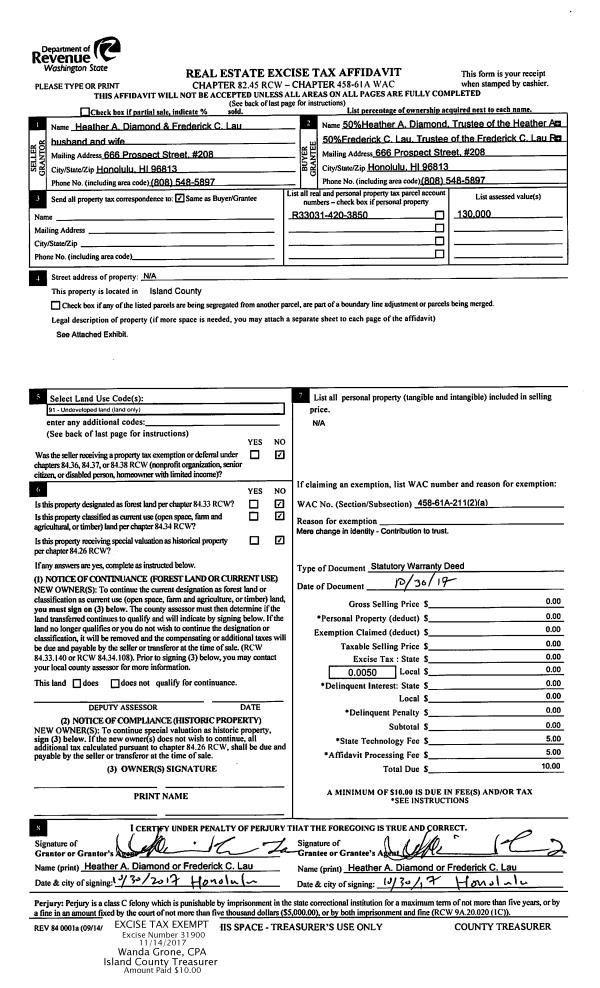 | Mailing Address: | DANA GILROY 223 CLOVERT CT LANGLEY, WA 98260 | % Ownership: | 100.0000000000% |