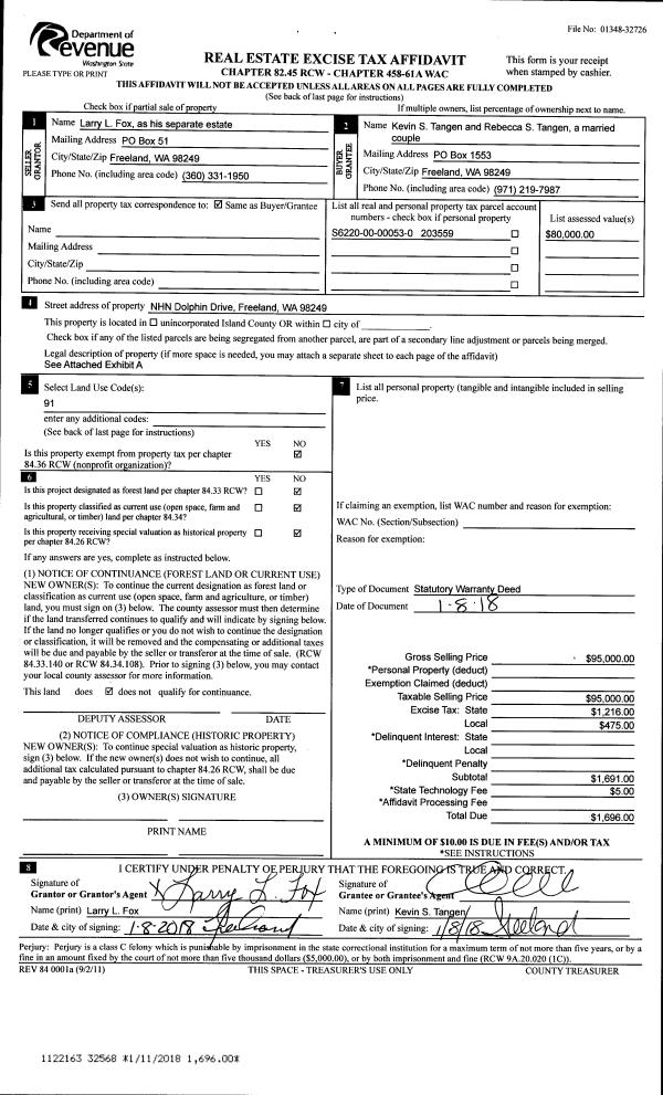 | Tax Area: | 712 - APPRAISER-S Whid Schl Dist, outside Langley, improved, greater than 1 acre | Land Use Code | 11 |