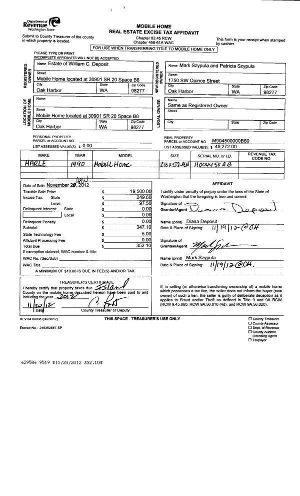 | Mailing Address: | PO BOX 184 COUPEVILLE, WA 98239 | % Ownership: | 100.0000000000% |