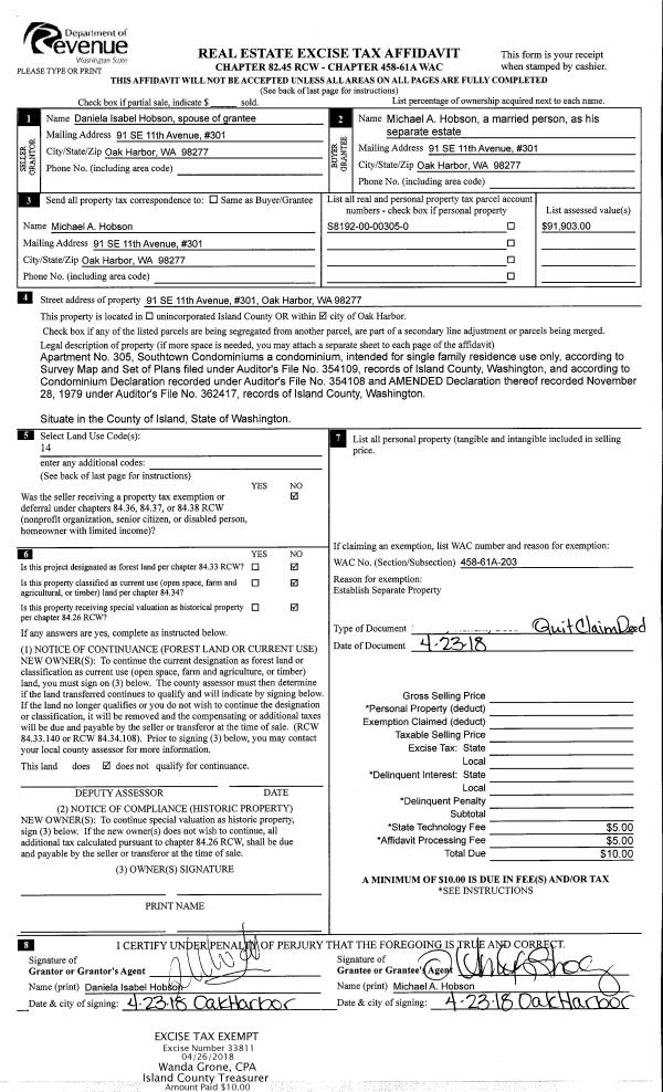 | Mailing Address: | 218 NW 1ST ST COUPEVILLE, WA 98239 | % Ownership: | 100.0000000000% |