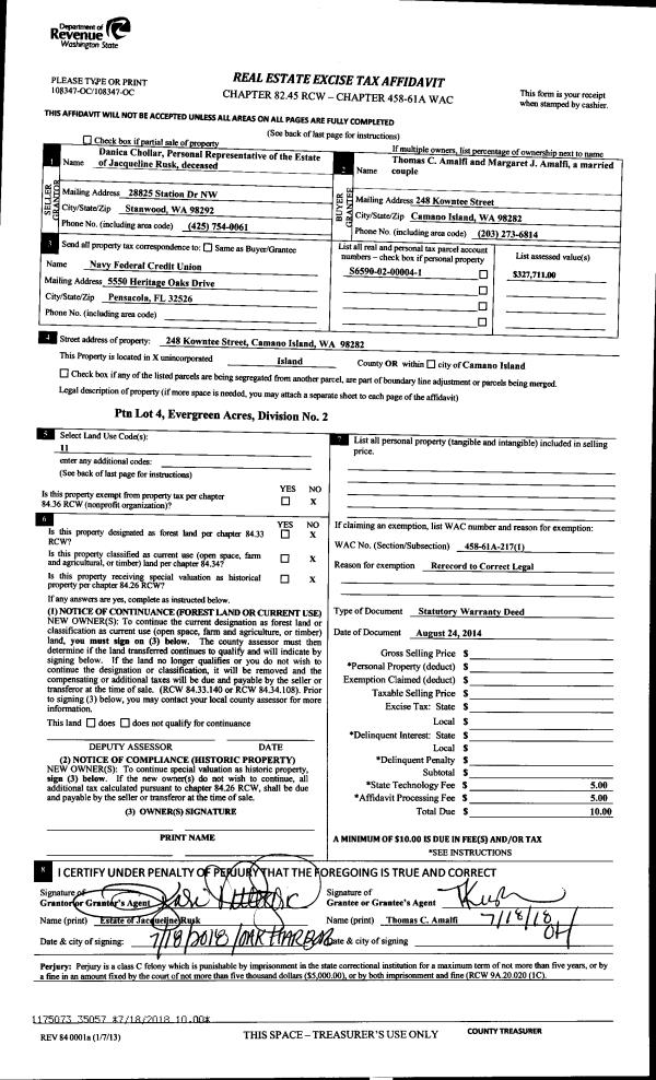 | 4 | 06/08/2015 | WD | Warranty Deed | CASCADIAN HOLDINGS LLC | JOHNSON, LEONARD C | | | $232,000.00 | 19932 | 4379894 |