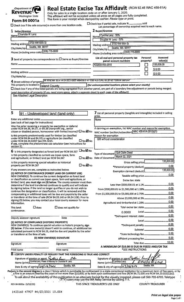 | 2 | 11/20/2020 | QCD | Quit Claim Deed | LYNGRA, STIG | LYNGRA, SARAH BEATRICE POWELL | | | $0.00 | 45828 | 4503087 |