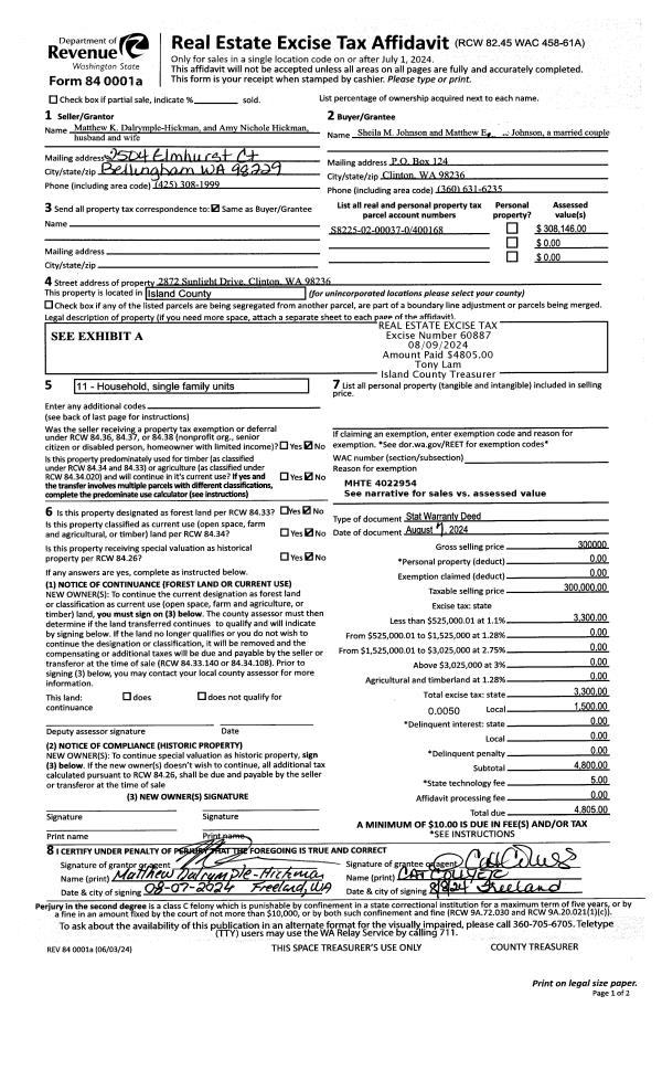 | 1 | 12/20/2023 | WD | Warranty Deed | HINKLEY, DEREK | HINKLEY, DEAN MICHAEL | | | $267,498.00 | 58870 | 4568045 |