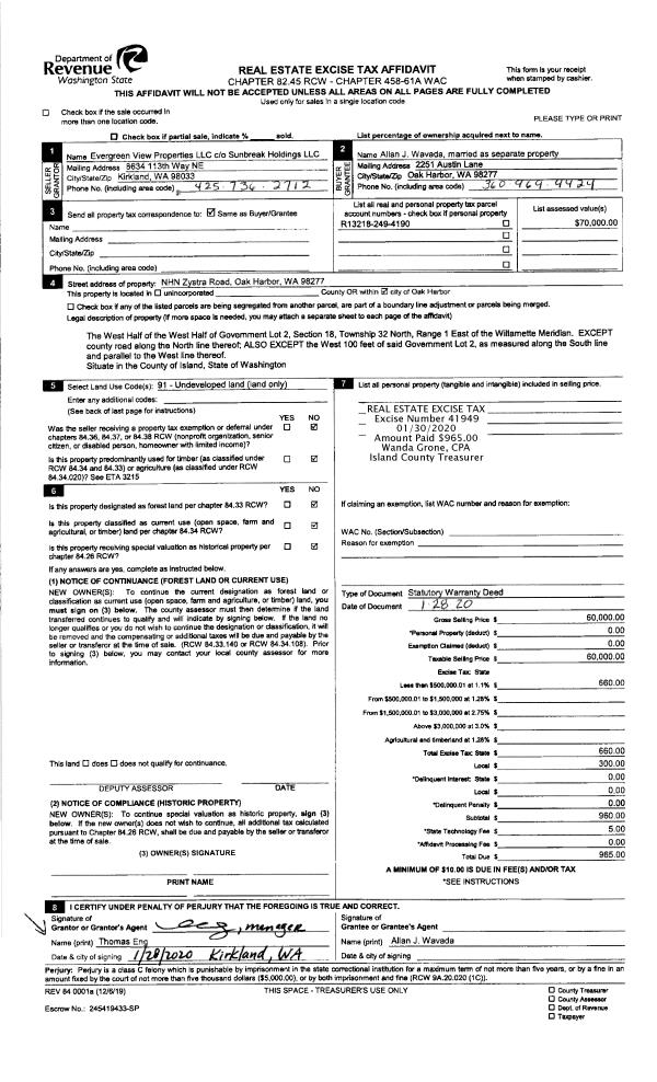 | Tax Area: | 719 - APPRAISER-S Whid Schl Dist, outside Langley, vacant & 50 acres or less | Land Use Code | 88 |